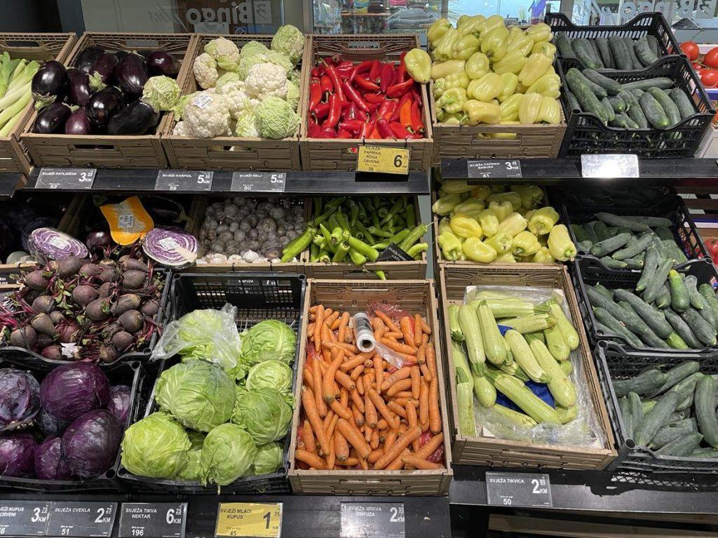Jagode (4-7 KM), Trešnje (8-10 KM), Limun (3 KM), Paradajz i krastavac (4 KM), Paprika (3-7 KM), Krompir (3 KM), Kupus (2,5-3 KM), Salata (4 KM), Buranija (5 KM), Mrkva (3 KM), Luk (3 KM)…