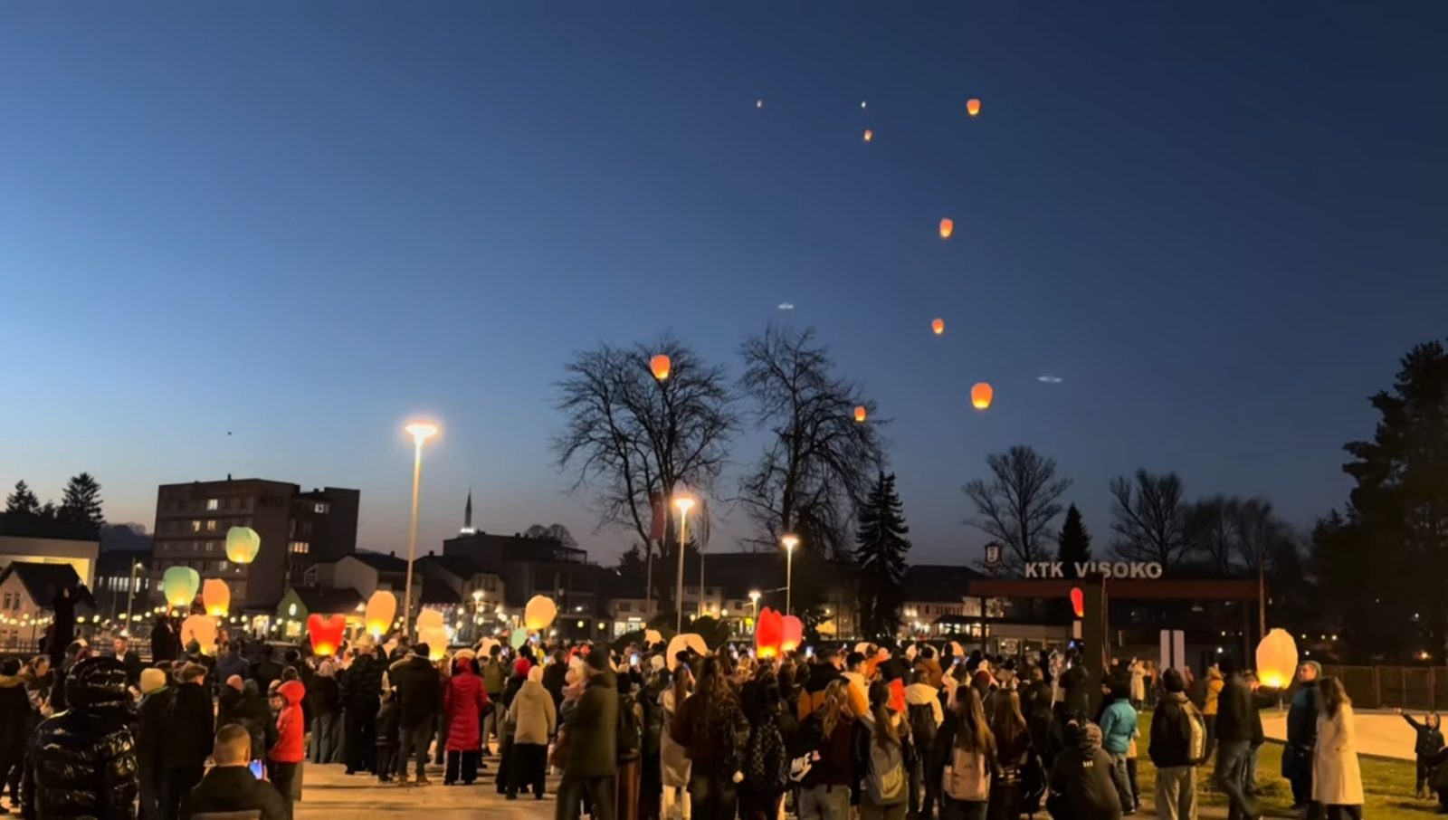 Nakon simboličnog oglašavanja, ispred Kulturnog centra okupili su se brojni građani, a posebno su se radovali najmlađi. Mališani su zajedno sa svojim roditeljima pustili lampione u zrak, šaljući poruke mira, nade i zajedništva.