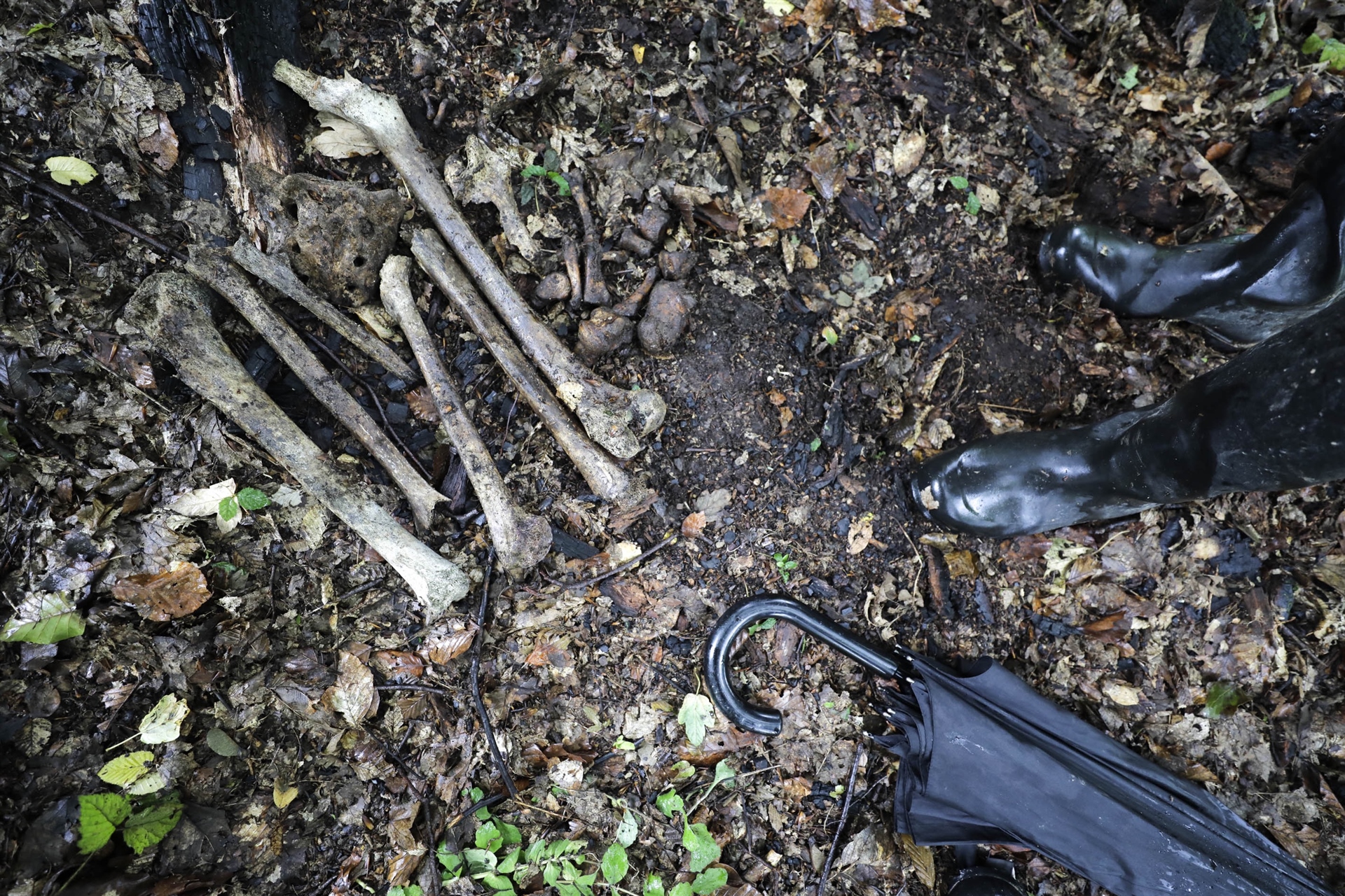 “Mislim da sam pronašao do 260 posmrtnih ostataka”, rekao je Nukić dok stoji pored kostiju pronađenih na Kameničkom brdu.