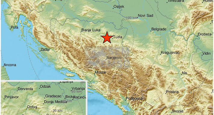 Prema podacima EMSC-a, zemljotres je registrovan 22 kilometra zapadno od Tuzle