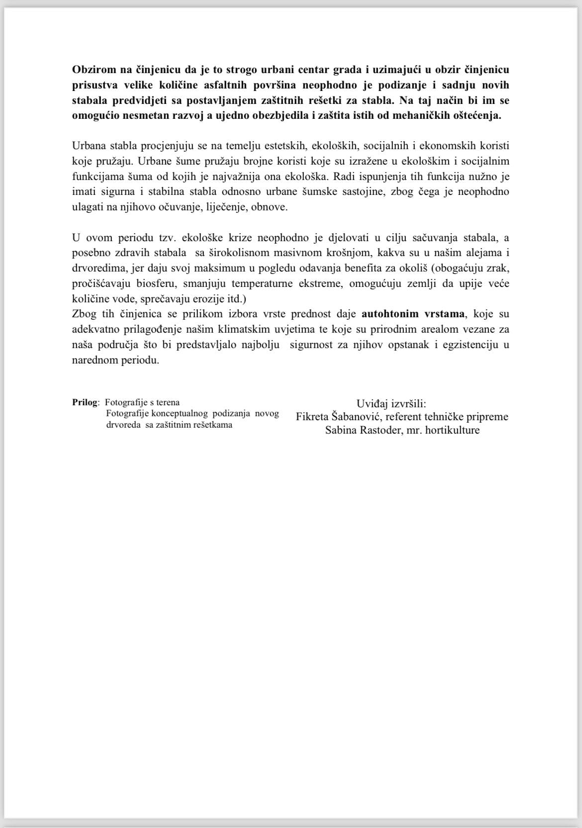 No, za mnoge građane, ovo obrazloženje otvara pitanja. Zašto nije ranije ponuđen jasan plan o očuvanju zdravih stabala i njihovoj zamjeni kroz fazne radove?