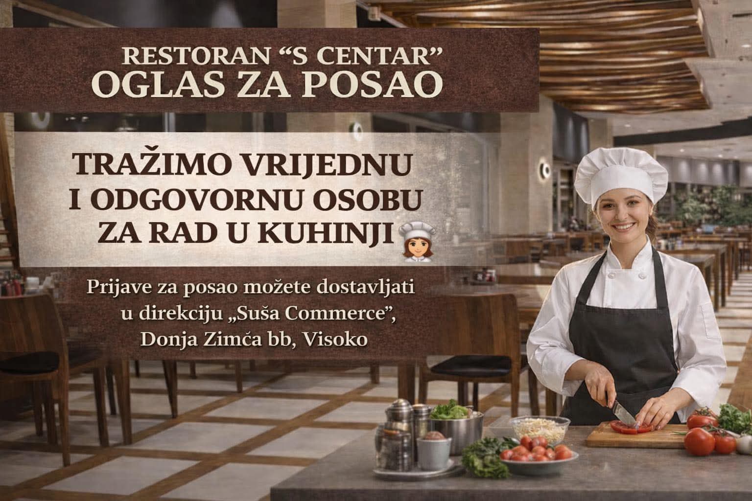 Restoran S Centar proširuje svoj tim i raspisuje oglas za prijem radnika na poziciju pomoćne kuharice/kuhara.