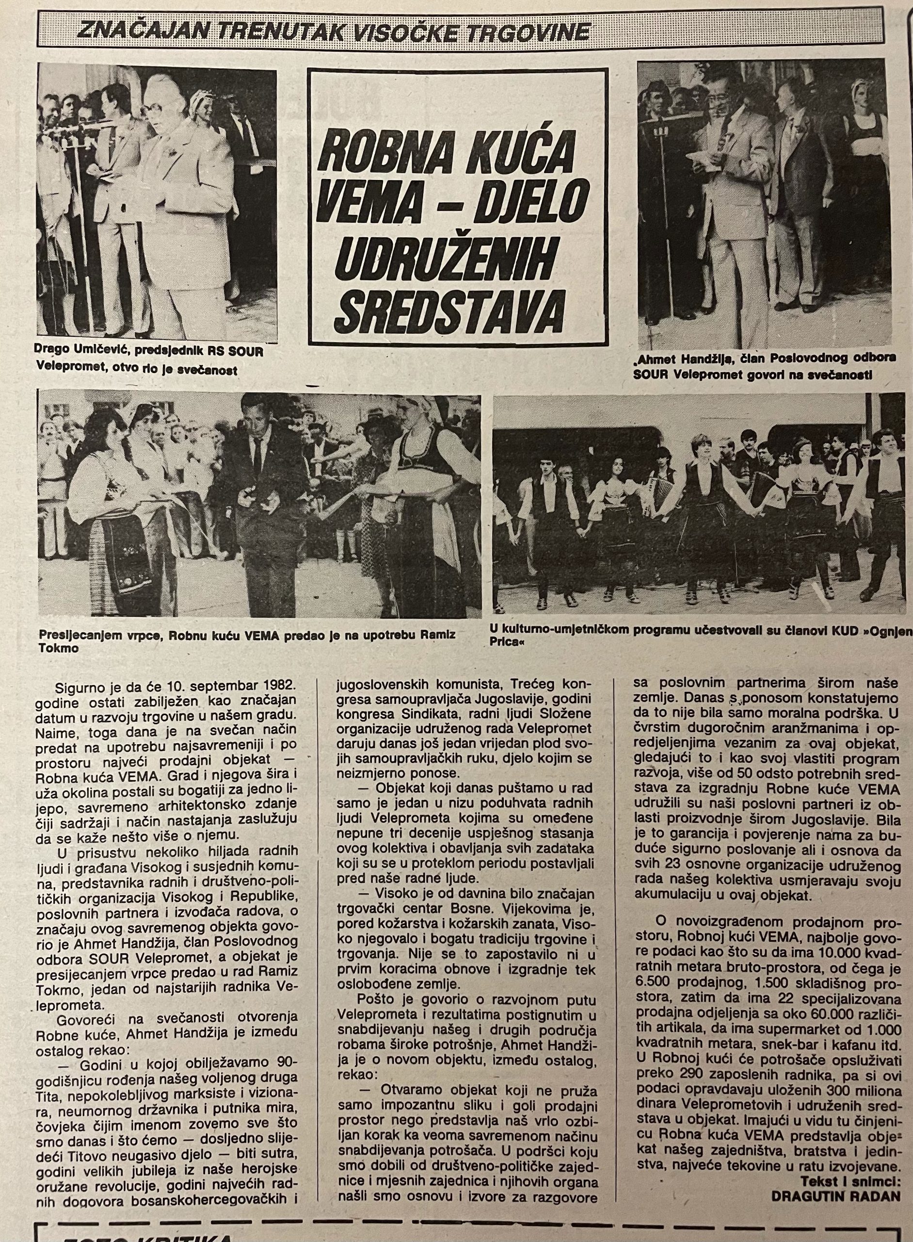 Zahvaljujući arhivi nekadašnjih visočkih novina “Naš život” u prilici smo vidjeti kako je to bilo na otvorenju bivše Robne kuće “Vema”, 10. septembra 1982. godine.