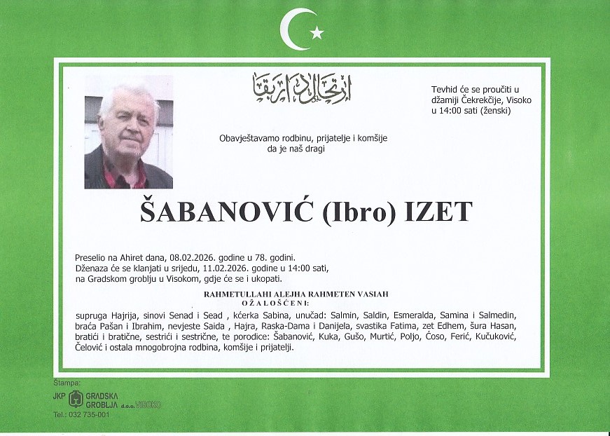 ŠABANOVIĆ (Ibro) IZET 11.02.2026. u 14:00 sati