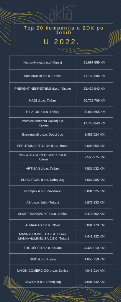 Kada je u pitanju dobiti kompanija u ZDK ovaj kanton iz godine u godine bilježi rast, pokazuju to podaci dostupni na portalu Akta.ba, a na osnovu dostavljenih finansijskih izvještaja.