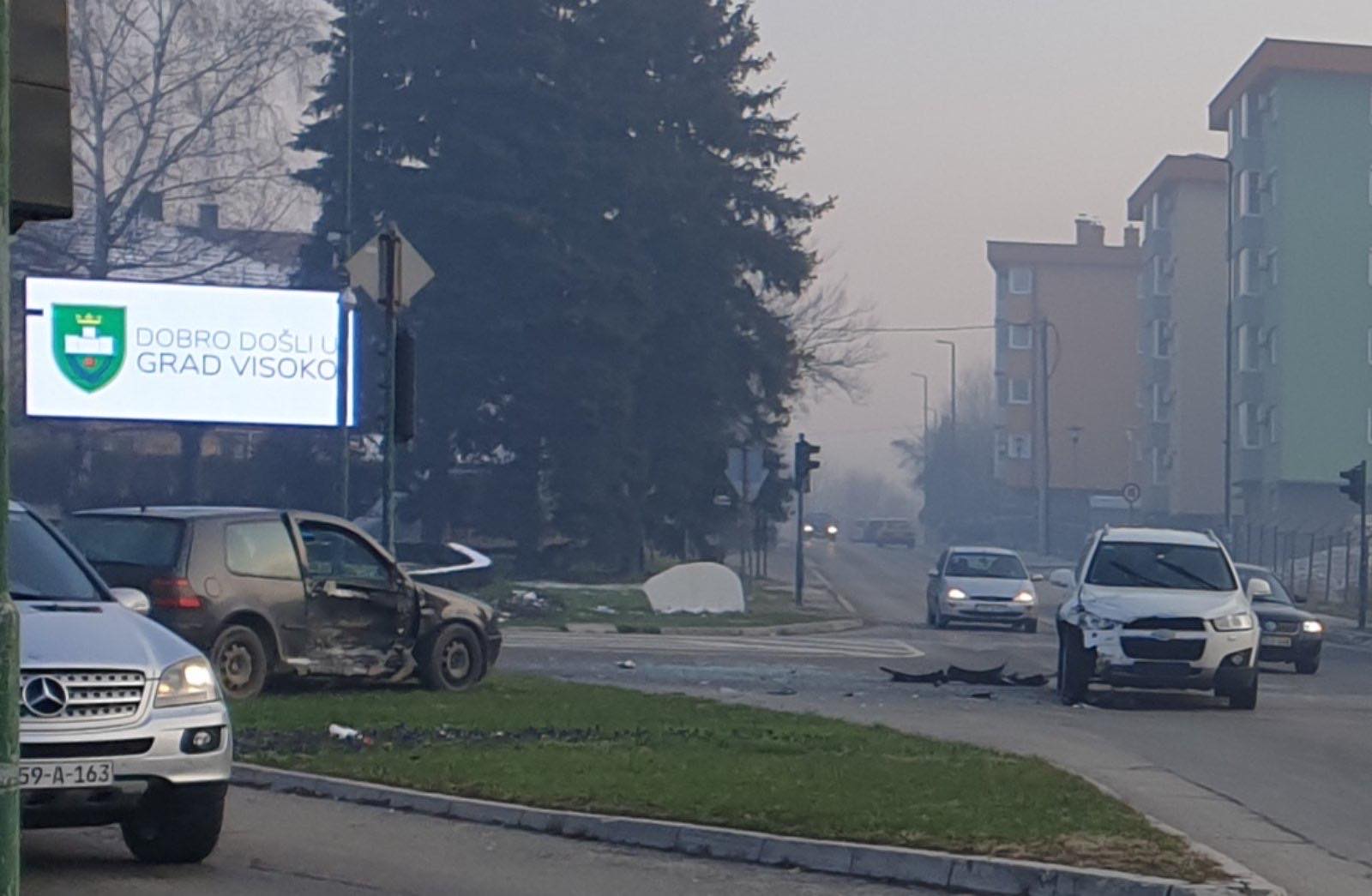 Na jednoj od najvećih raskrsnica u blizini Tržnog centra Suša u Visokom, dogodila se saobraćajna nesreća u kojoj su učestvovala dva vozila.