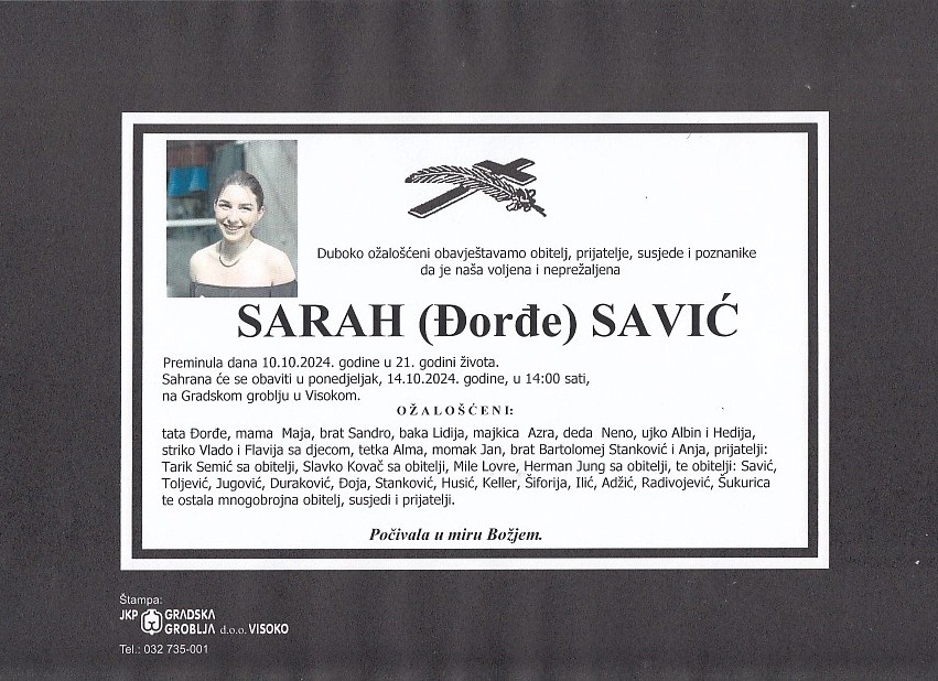 SAVIĆ (Đorđe) SARAH 14.10.2024. godine u 14:00 sati 11. Oktobra 2024.11. Oktobra 2024. SAVIĆ (Đorđe) SARAH 14.10.2024. godine u 14:00 sati