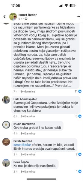 Na njegov status, fanovi Bećara i SDA ostavili su još gnusnije komentare, uključujući prijetnje da Milišić-Pepić treba “na kolac nabiti” i “uništiti izdajnike”.