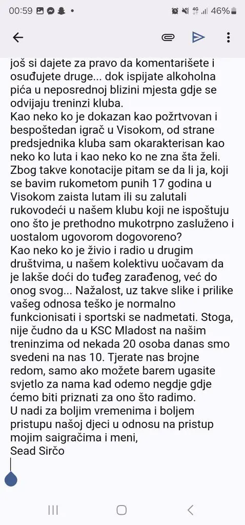 Na društvenim mrežama – lokanim medijima, valjda tema nije interesantna, možemo vidjeti da je predsjedink Upravnog odbora Kluba, izvjesni Irhad Avdagić suspendovao igrača i trenera Seada Sirču.