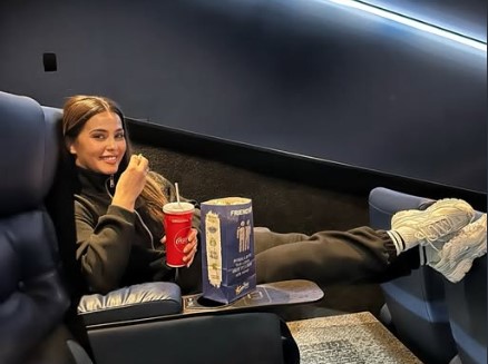 U trenerci i patikama, mlada mama je očigledno našla oduška pa se udobno smjestila u fotelju, ali ono što je mnogima zasmetalo jeste njeno ponašanje. Emina je noge ispružila i podigla na naslonjač u redu ispred sebe, što je za svaku osudu, budući da će neko spustiti svoju glavu upravo tu gdje je đon njenih patika.