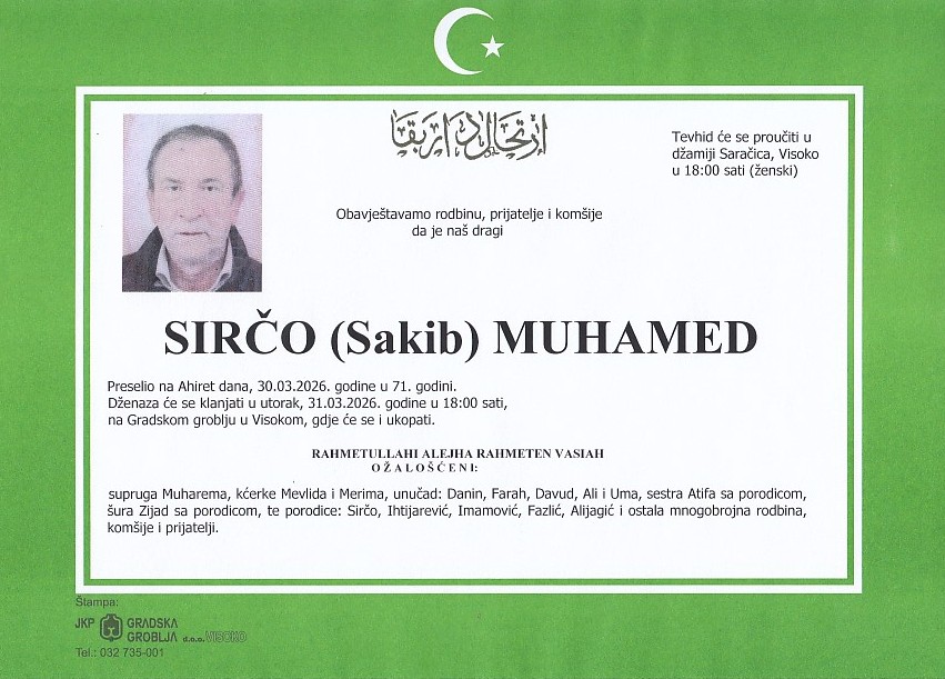 SIRČO (Sakib) MUHAMED 31.03.2026. u 18:00 sati