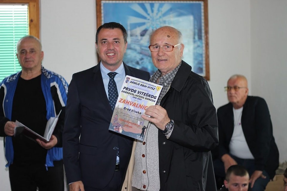 Gradonačelnik Visokog Mirza Ganić prisustvovao je danas svečanom obilježavanju godišnjice osnivanja Prvog viteškog dobrovoljačkog odreda – jedinice koja je maja 1992. godine, sa 232 hrabra borca, dobrovoljno došla u Visoko kako bi stala u odbranu Bosne i Hercegovine.
