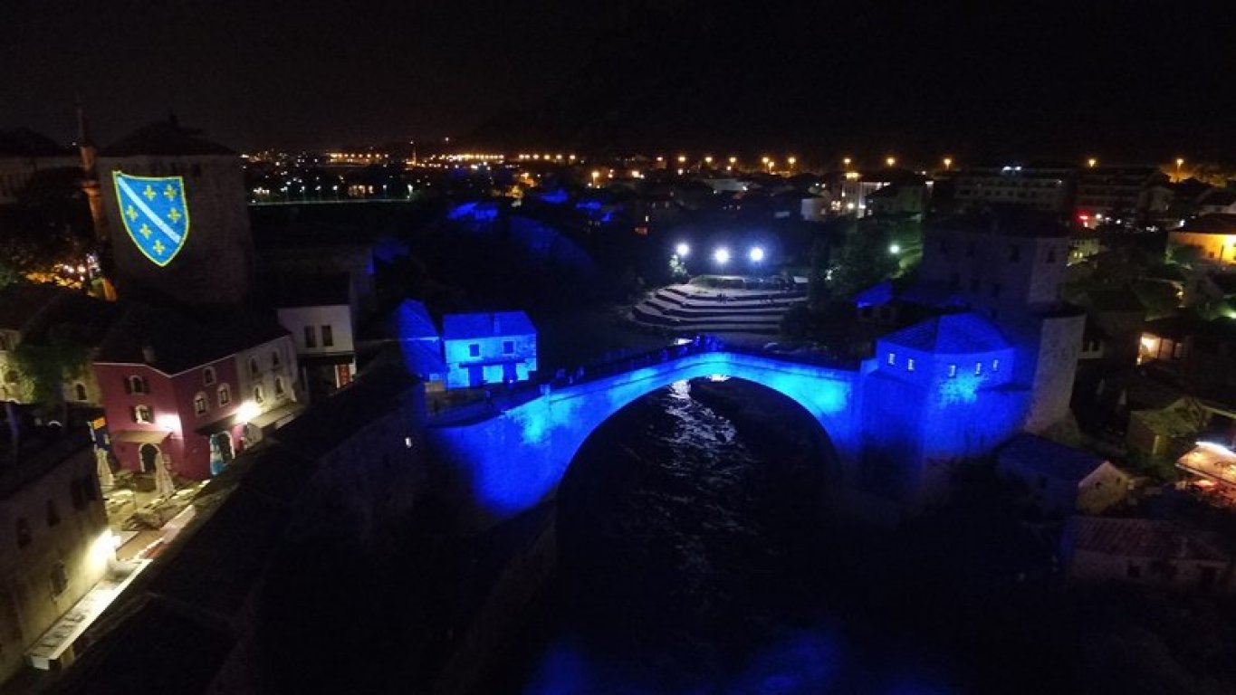 Koordinacija temeljnih boračkih organizacija proisteklih iz proteklog rata u odbrani Bosne i Hercegovine ( JOB Mostar, Udruženje Zlatni ljiljani, Udruženje RVI, Udruženje porodica šehida) i Klub skakača „Mostari“, u saradnji sa Arhivom Centra za mir Mostar, večeras su u 21:05 sati upriličili simboličan performans u ambijentu Starog mosta i historijske jezgre Mostara, a u povodu Dana pobjede nad fašizmom i Praznika Zlatnih ljiljana Armije Bosne i Hercegovine.