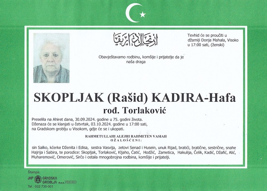 SKOPLJAK (Rašid) KADIRA 03.10.2024. godine u 17:00 sati 2. Oktobra 2024. SKOPLJAK (Rašid) KADIRA 03.10.2024. godine u 17:00 sati