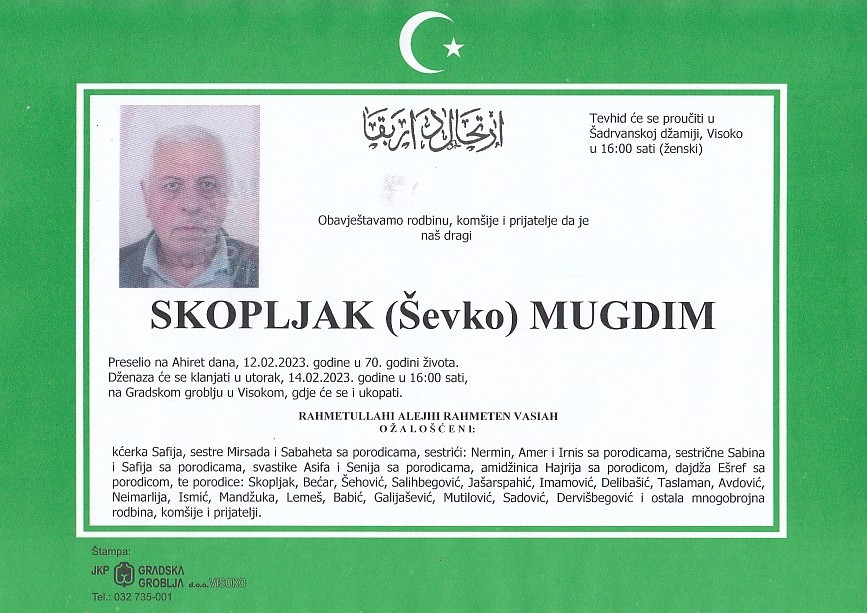 SKOPLJAK (Ševko) MUGDIM 14.02.2023. godine u 16:00 sati 13. Februara 2023. SKOPLJAK (Ševko) MUGDIM 14.02.2023. godine u 16:00 sati