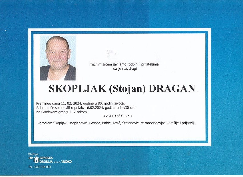 SKOPLJAK (Stojan) DRAGAN 16.02.2024. godine u 14:30 sati 14. Februara 2024. SKOPLJAK (Stojan) DRAGAN 16.02.2024. godine u 14:30 sati