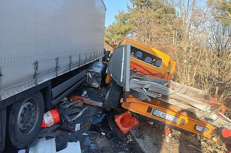 Policija je saopćila da je vozač kamiona kod Hlohovca imao udes sa radnom mašinom i teretnim vozilom, a ubrzo nakon toga se dogodila saobraćajna nezgoda u kojoj su učestvovala još tri vozila.