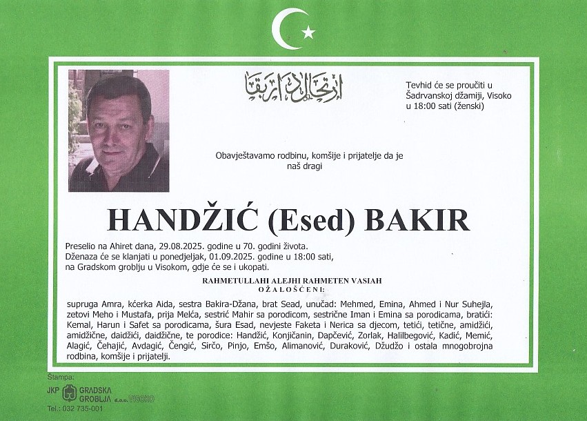 HANDŽIĆ (Esed) BAKIR 01.09.2025. u 18:00 sati