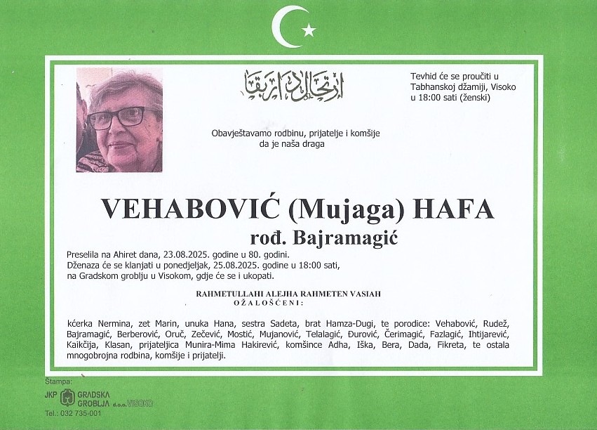 VEHABOVIĆ (Mujaga) HAFA 25.08.2025. u 18:00 sati