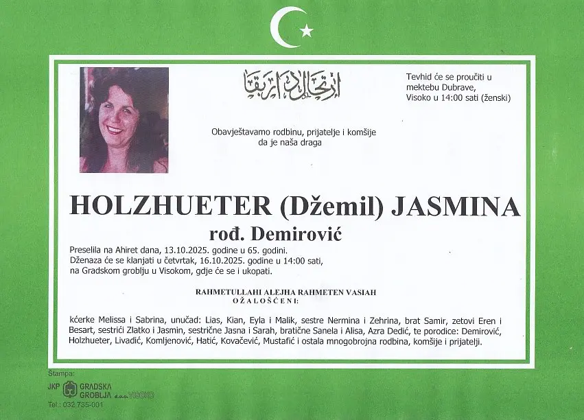 HOLZHUETER (Džemil) JASMINA 16.10.2025. u 14:00 sati