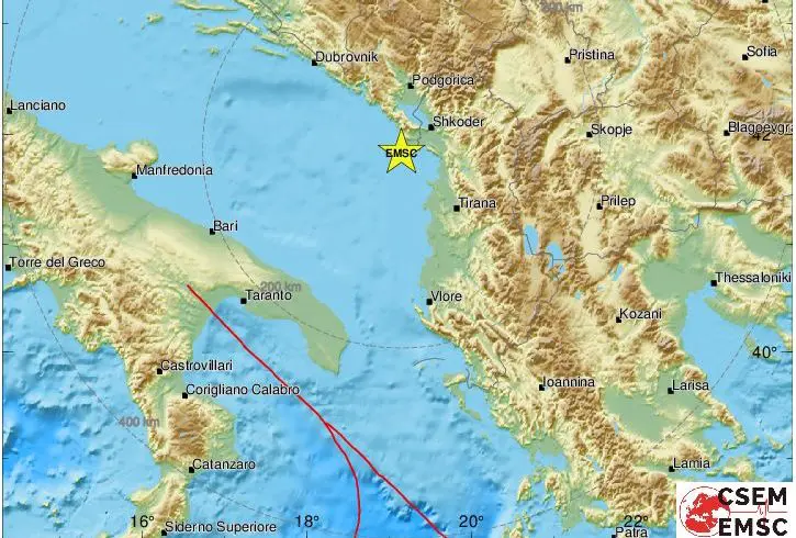 U Jadranskom moru, kod albanske obale, zabilježen je potres jačine 4.0 prema Richteru, javlja EMSC, koji je prvotno zabilježio magnitudu od 4,6 prema Richteru.