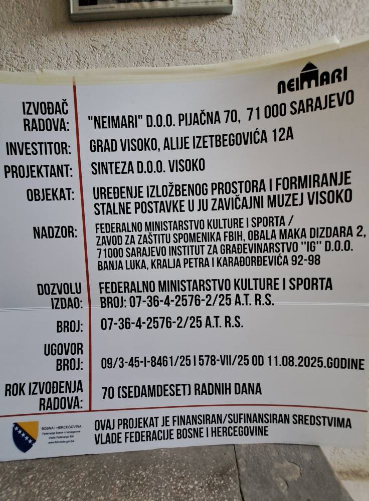 U JU Zavičajni muzej Visoko trenutno se izvode radovi na uređenju izložbenog prostora i formiranju stalne postavke. Ovaj projekat predstavlja važan korak u očuvanju i prezentaciji kulturno-historijske baštine Visokog.