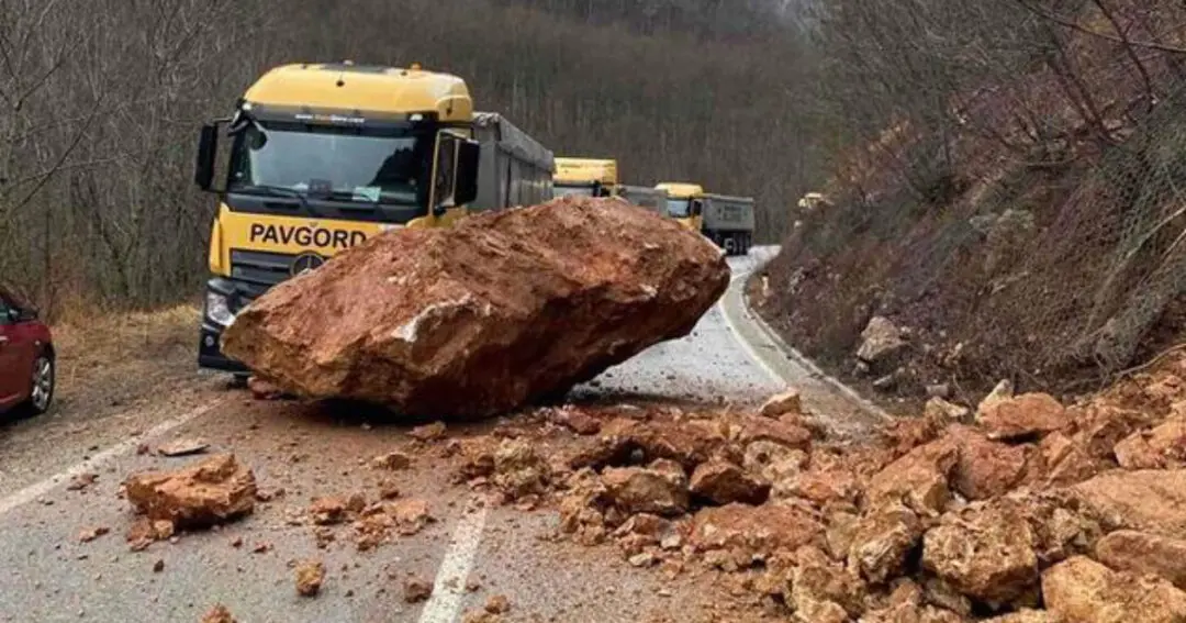 Kako su potvrdili iz MUP-a Republike Srpske, jutros oko 8 sati na putu Miljevina-Dobro polje u mjestu Tuhalji koje se nalazi u općini Foča stijena je pala na magistralni put i udarila u teretno motorno vozilo.