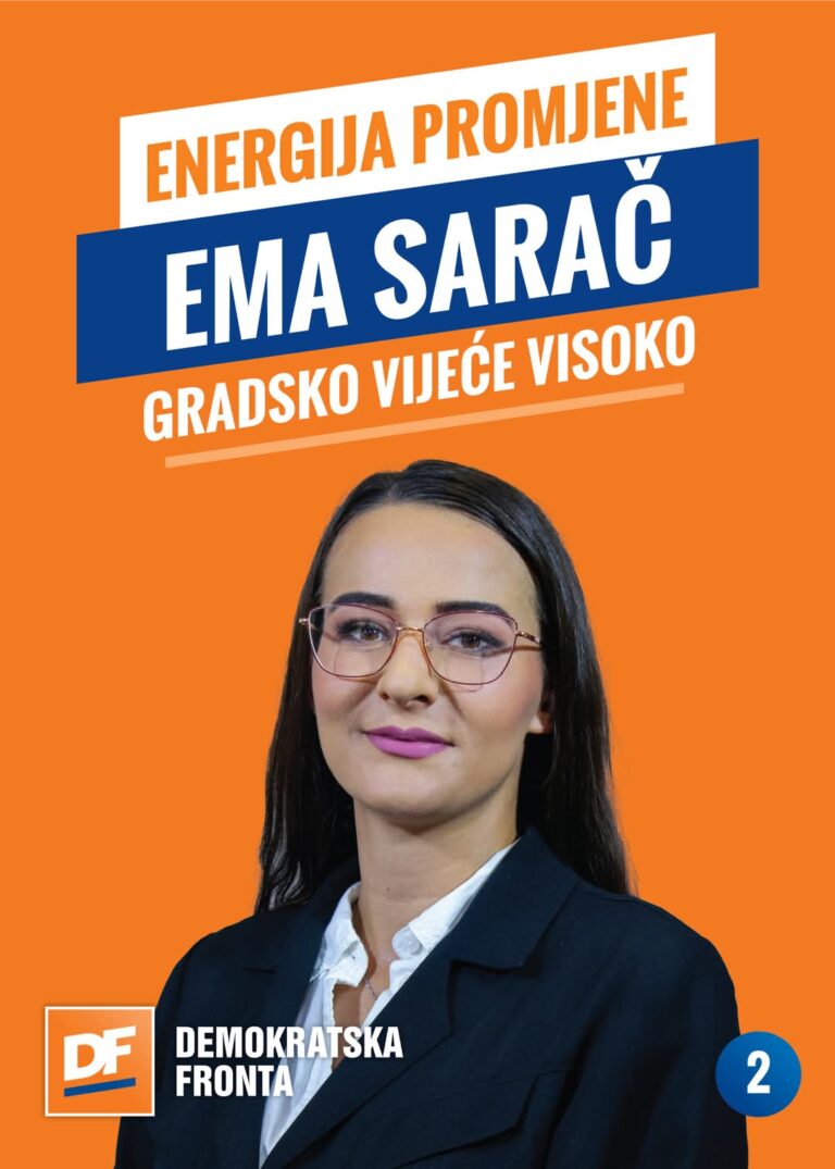 Ema Sarač je na Lokalnim izborima bila kandidatkinja DF-a za Gradsko vijeće Visokog.