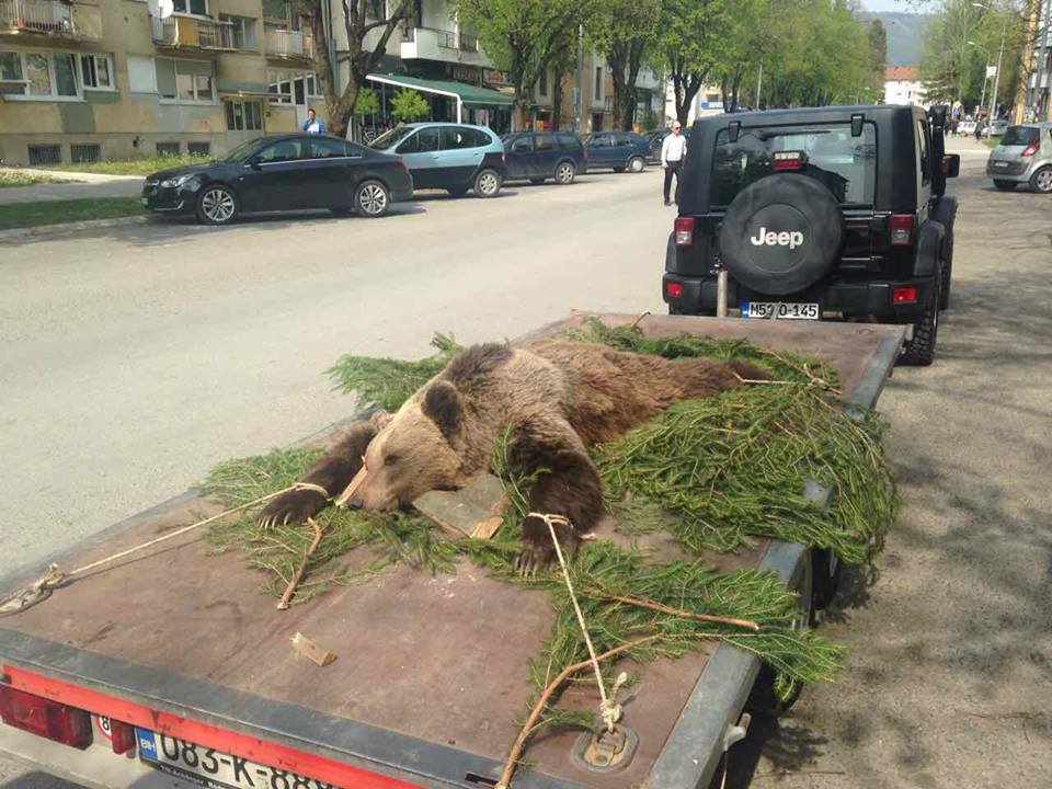 Jučer je jedan korisnik Facebooka objavio fotografiju ubijenog medvjeda kojeg je nepoznati muškarac vozio na prikolici kroz centar Doboja.