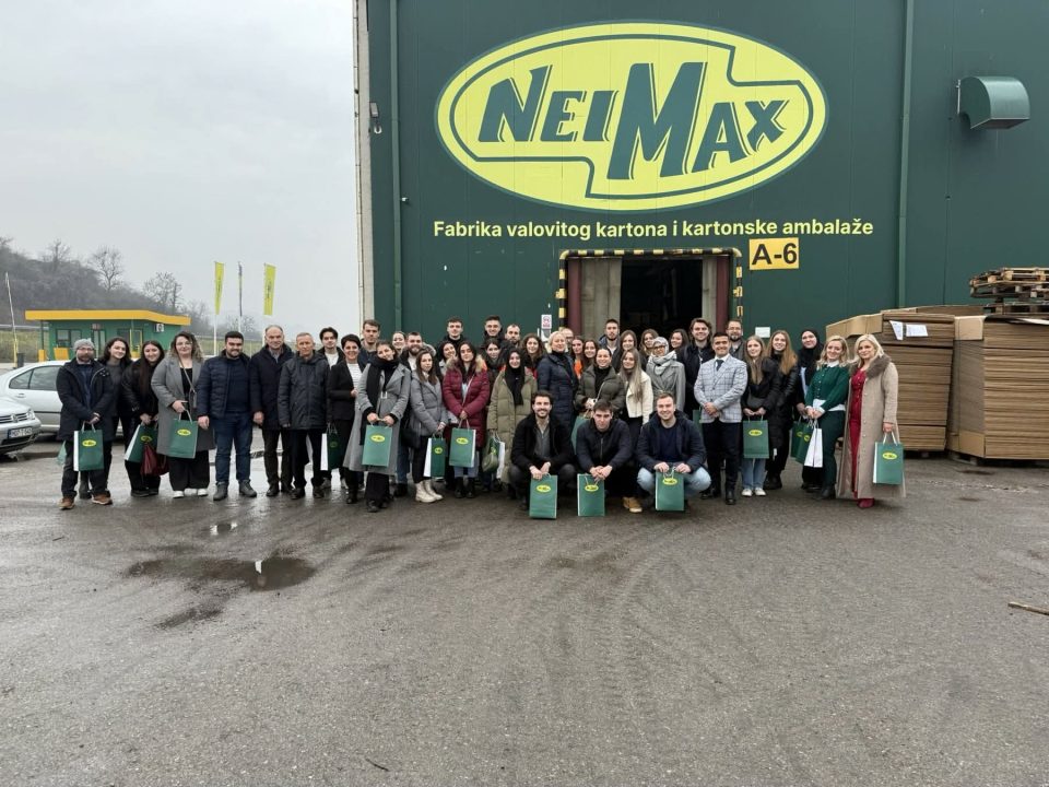 Kompanija Neimax ugostila je studente Mašinskog fakulteta, pruživši im priliku da se iz prve ruke upoznaju s procesima proizvodnje u savremenoj fabrici kartonske ambalaže. Tokom posjete, studenti su obišli ključne segmente proizvodnje, vidjeli rad modernih linija i upoznali se s tehnološkim rješenjima koja Neimax svakodnevno primjenjuje.