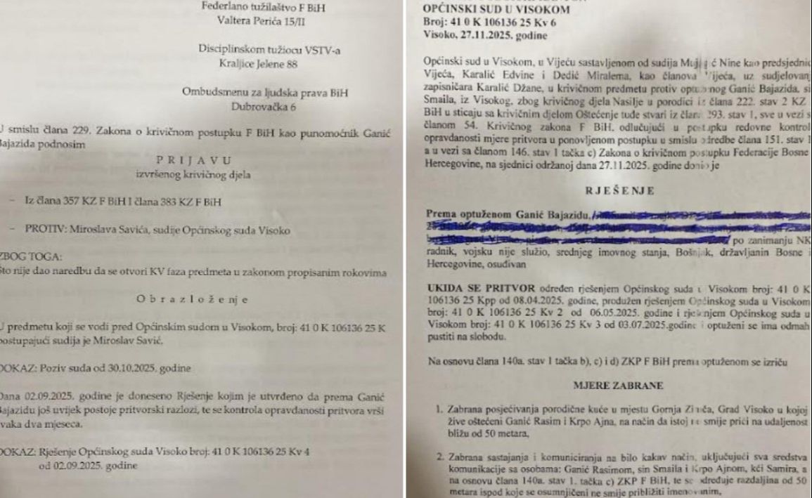 Predmet je vodio Miroslav Savić, sudija koji je do isteka roka 2. novembra 2025. bio dužan dati naredbu da se otvori nova faza i ispita kontrola opravdanosti pritvora. To je propustio uraditi i, kako saznaje „Dnevni avaz“, odbrana Ganića je podnijela prijedlog za ukidanje pritvora 4. novembra i krivičnu prijavu protiv sudije Savića, što je u konačnici imalo za posljedicu ukidanje pritvora Ganiću 27. novembra!