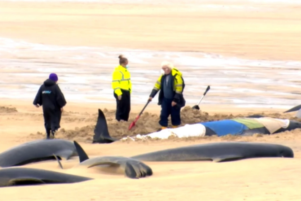 British Divers Marine Life Rescue (BDMLR) pokušao je da izvuče dva kita koja su pokazivala znakove života i bili aktivniji u dubljem dijelu vode i jedan je uspio da pobjegne. Međutim, drugi se naknadno ponovno nasukao i uginuo, a još tri su doživjela istu sudbinu. Oko 15:30 odlučeno je da preostale kitove treba eutanazirati kako bi im se smanjile muke, prenosi Dnevnik.hr.