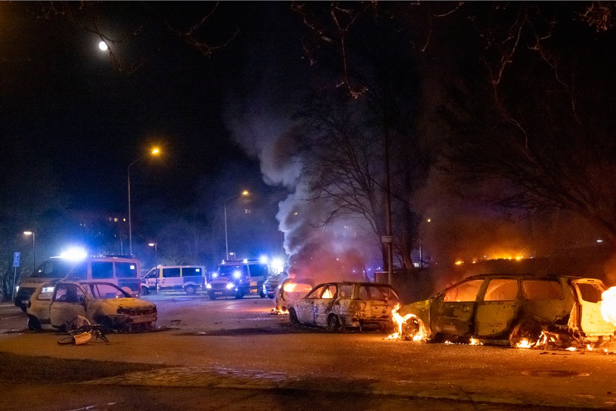 Nekoliko policijskih automobila je već zapaljeno u gradovima Linćeping i Erebro. Ksenofobične akcije je trebalo da se odvijaju u dijelovima grada u kojima živi posebno veliki broj muslimana. Oformila se rulja uglavnom i situacija je eskalirala. Desetak policajaca je povrijeđeno u četvrtak i petak. U Stokholmu je bilo i nereda uz bacanje kamenica.