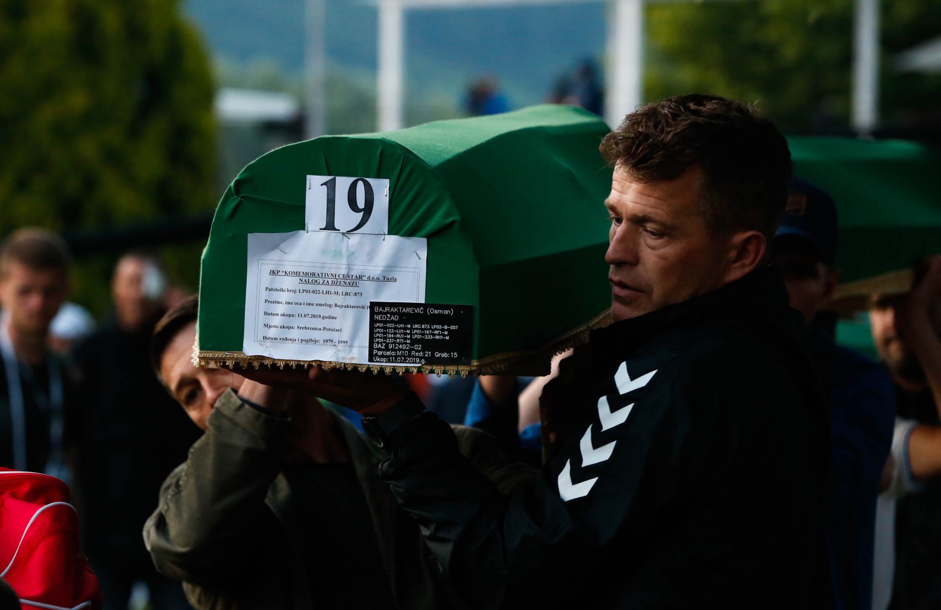 Iz kruga bivše Fabrike akumulatora u Potočarima u večernjim satima do prostora Musale u Memorijalnom centru Srebrenica – Potočari izneseni su tabuti s posmrtnim ostacima 33 identificirane žrtve genocida u Srebrenici.