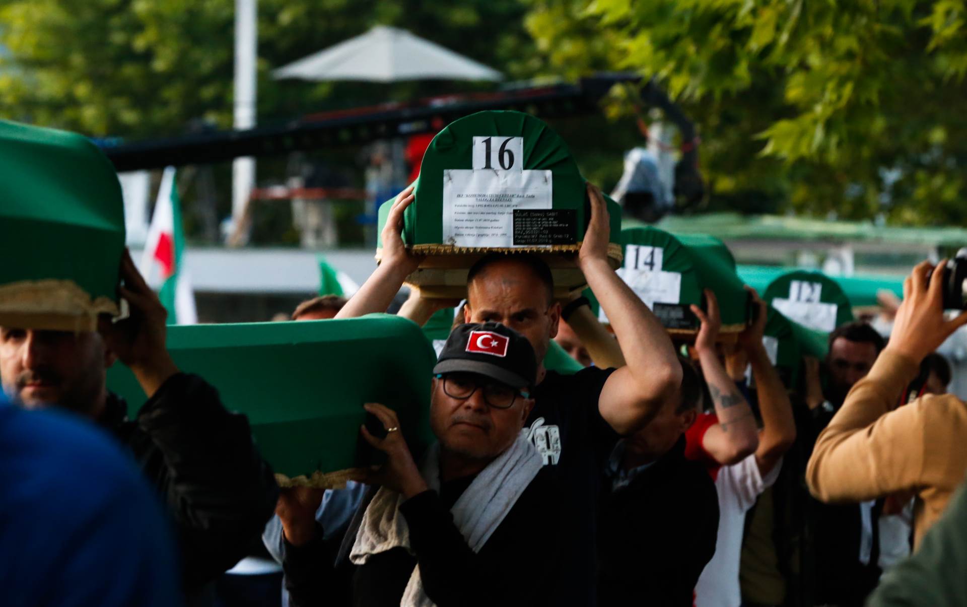 Tabute sa posmrtnim ostacima srebreničkih žrtava na rukama do Musale prenijeli su članovi porodica ubijenih Srebreničana kao i učesnici ovogodišnjeg Marša mira.