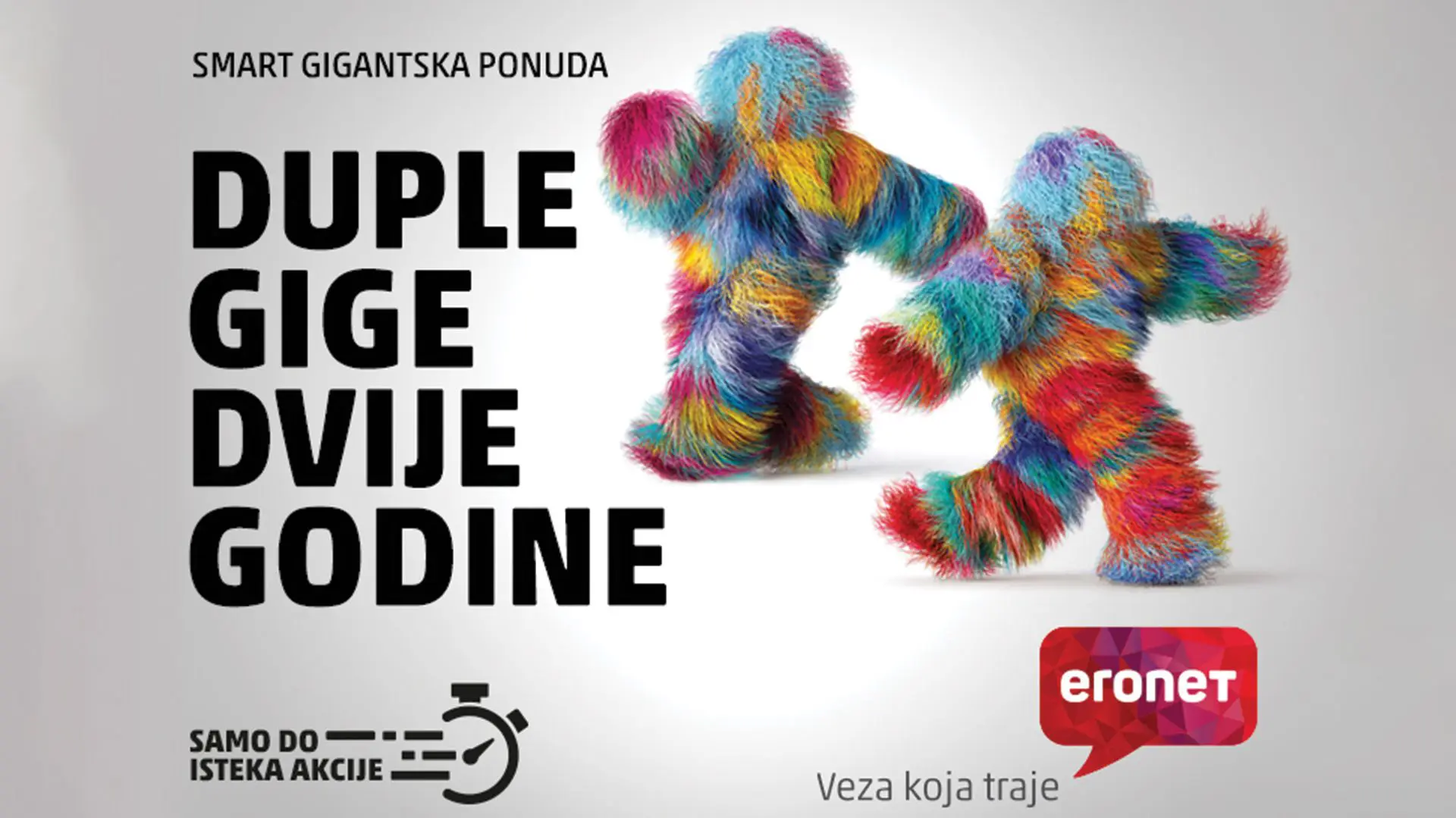 Zbog iznimnog je interesa Eronet produžio akciju Duple gige dvije godine! za nove korisnike SMART tarifa koji potpišu novi ili produlje postojeći ugovor...