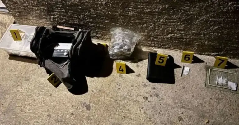Izvršenim pretresom, u okviru kojeg je korišten i policijski pas za otkrivanje narkotika, pronađeno je 3.173 grama praškaste materije koja svojim izgledom asocira na opojnu drogu amfetamin (speed), dvije ručne bombe i okvir za pištolj, digitalna vaga za precizna mjerenja i dva aparata za vakumiranje.