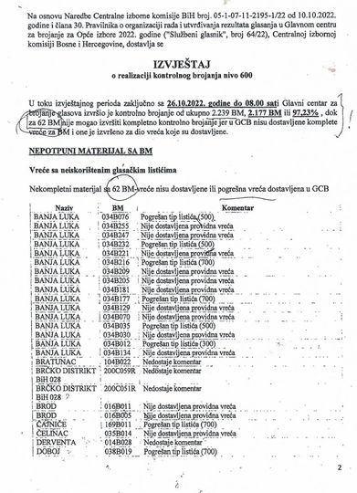 Jelena Trivić je objavila šta je konstatovano u izvještaju Glavnog centra za brojanje o kontrolnom brojanju i svim saznanjima koja su utvrđena tokom kontrolnog brojanja za nivo predsjednika Republike Srpske. Uz tekst, ona je objavila i fotografije izvještaja. U samom izvještaju navode se brojne nepravilnosti.