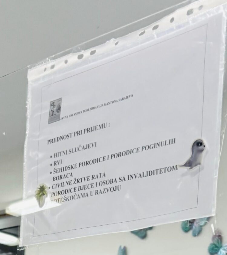 Prilikom posjete zdravstvenim ustanovama na području Kantona Sarajevo oduvijek je postojala lista prednosti za pacijente. One su podrazumijevale da prilikom prijema trudnice, onkološki pacijenti, hitni slučajevi, šehidske porodice i porodice poginulih boraca, civilne žrtve rata, ratni vojni invalidi, porodice djece i osoba s invaliditetom i poteškoćama u razvoju ne čekaju u redu kao ostali pacijenti, već da u odnosu na njih imaju, kako je i navedeno, prednost pri ulasku zbog stanja i dijagnoze koju imaju. Međutim, prema svemu sudeći, taj spisak je promijenjen pa sada u domovima zdravlja u KS prednost više nemaju trudnice ni onkološki pacijenti.