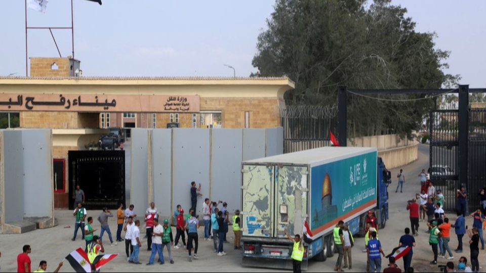 Palestinsko društvo Crvenog polumjeseca saopštilo je da je primilo deset kamiona na prelazu. U saopštenju se navodi da kamioni egipatskog Crvenog polumjeseca prevoze hranu, lijekove i medicinske potrepštine.