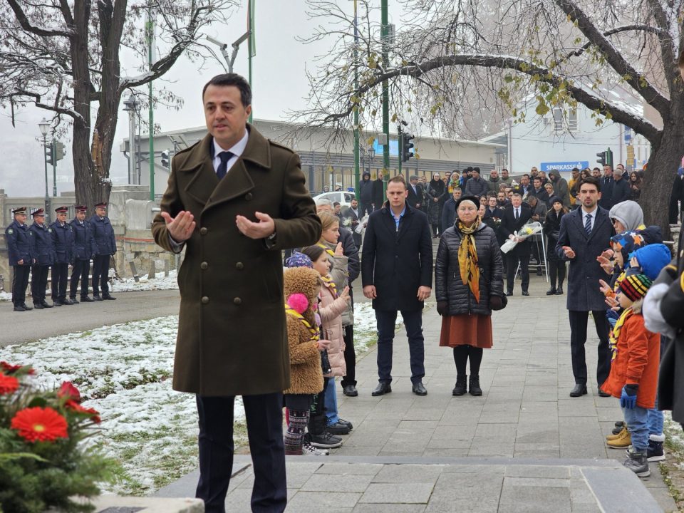 “Dan državnosti BiH obilježava se 25. novembra kao simbolično podsjećanje na prvo zasjedanje ZAVNOBiH-a, na zasjedanju je usvojena Rezolucija koja proklamuje vrijednosti jedne ravnopravne zajednice unutar Jugoslavije ali sa historijskim granicama BiH koje su datirale još iz srednjovjekovlja. Ideja antifašizma, zajedništva, ravnopravnosti, poštovanja drugog i drugačijeg vodila je učesnike ZAVNOBiH-a u Mrkonjić Gradu tačno prije 81 godinu. Rezolucijom ZAVNOBiH-a proglašava se volja naroda BiH, da BiH bude njihova država. Od tada do danas BiH je prošla težak put ali je opstala i ostala država. Neka ovaj dan bude trenutak naše svjesnosti i zahvalnosti jer imamo svoju domovinu ali i podsjetnik da je trebamo čuvati i voljeti. Neka ovaj dan bude inspiracija da nastavimo ustrajno koračati putem razvoja, solidarnosti i zajedništva kako bismo ostvarili bolje sutra za sve generacije koje dolaze. Bolje sutra je na strani mira i integracija, na strani svih onih koji vole rodnu grudu, koji žele da njihova djeca žive i školuju se u stabilnoj, prosperitetnoj i slobodnoj državi, ravnopravnoj članici EU. Zato ćemo predano nastaviti da radimo za bolje sutra, nećemo pristati na zaborav. Obilježavat ćemo Dan državnosti, njegovat ćemo ideju antifašizma i univerzalnih ljudskih prava i sloboda. Čuvat ćemo sjećanje na hrabre i plemenite pretke, na njihova djela koja su unijela svjetlo u najmračnije momente historije. Izborit ćemo se da BiH bude zemlja slobodnih i ravnopravnih ljudi, zemlja u kojoj niko neće patiti i biti ugrožen zbog svoje vjere, nacije, političkog stava ili uvjerenja. Zato svim građanima BiH želim sretan Dan državnosti”- izjavio je u svom obraćanju gradonačelnik Mirza Ganić.