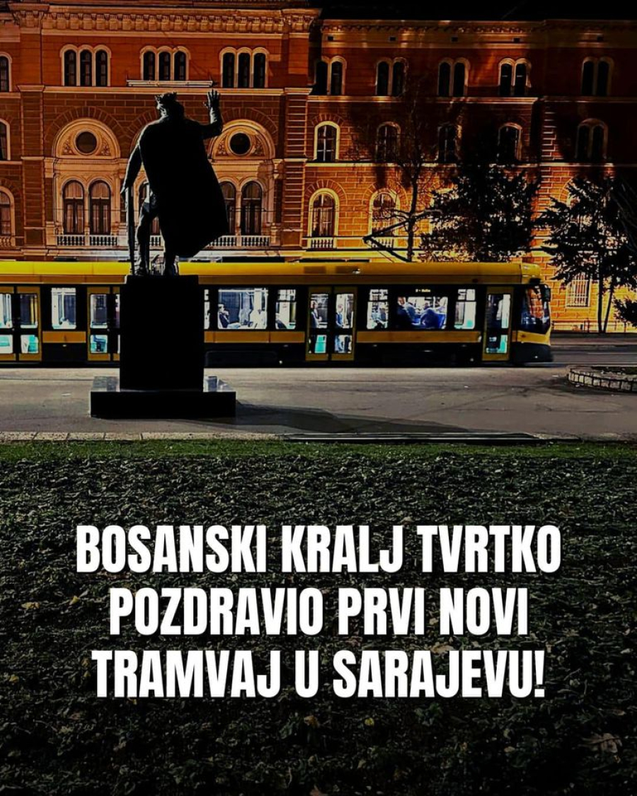 Bosanski kralj Tvrtko I Kotromanić pozdravio je prvi novi tramvaj u Sarajevu ❤️