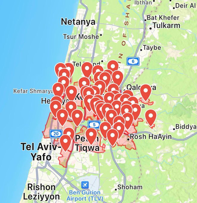 Novinari u Tel Avivu na mreži X objavili su izvještaje o presretanju projektila u gradu i drugdje u centralnom Izraelu u utorak ujutro.
