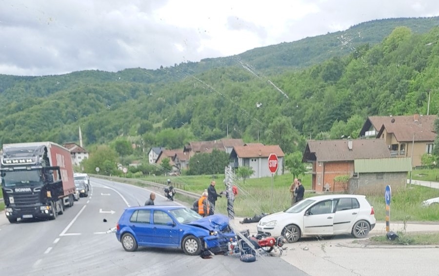 U nezgodi su učestvovali automobil i motocikl, prilikom čega su povrijeđena oba vozača koja su prevezena na ukazivanje ljekarske pomoći u Kantonalnoj bolnici Zenica.