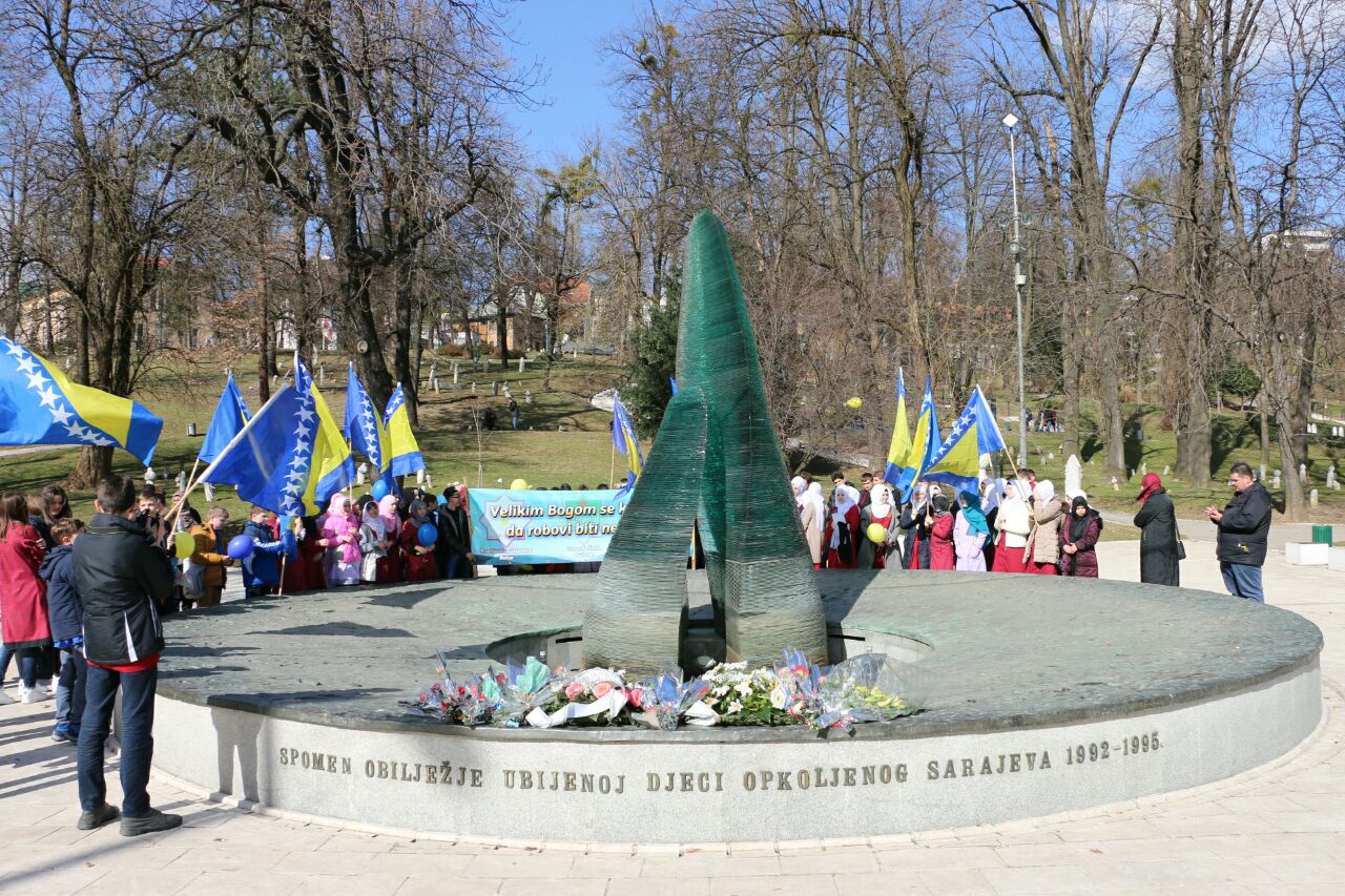 Naime, žuto-plava kolona je, u pratnji policije, prvo posjetila šehidsko mezarje “Kovači” gdje je odala počast svim šehidima, i prvom predsjedniku Bosne i Hercegovine rahmetli Aliji Izetbegoviću. Nakon toga su se lagano uputili, dijeleći zastavice slučajnim, i posve iznenađenim, prolaznicima, ka Trgu djece Sarajeva, gdje se “Fatihom” i minutom šutnje prisjetiše tih prerano ubranih cvjetova.