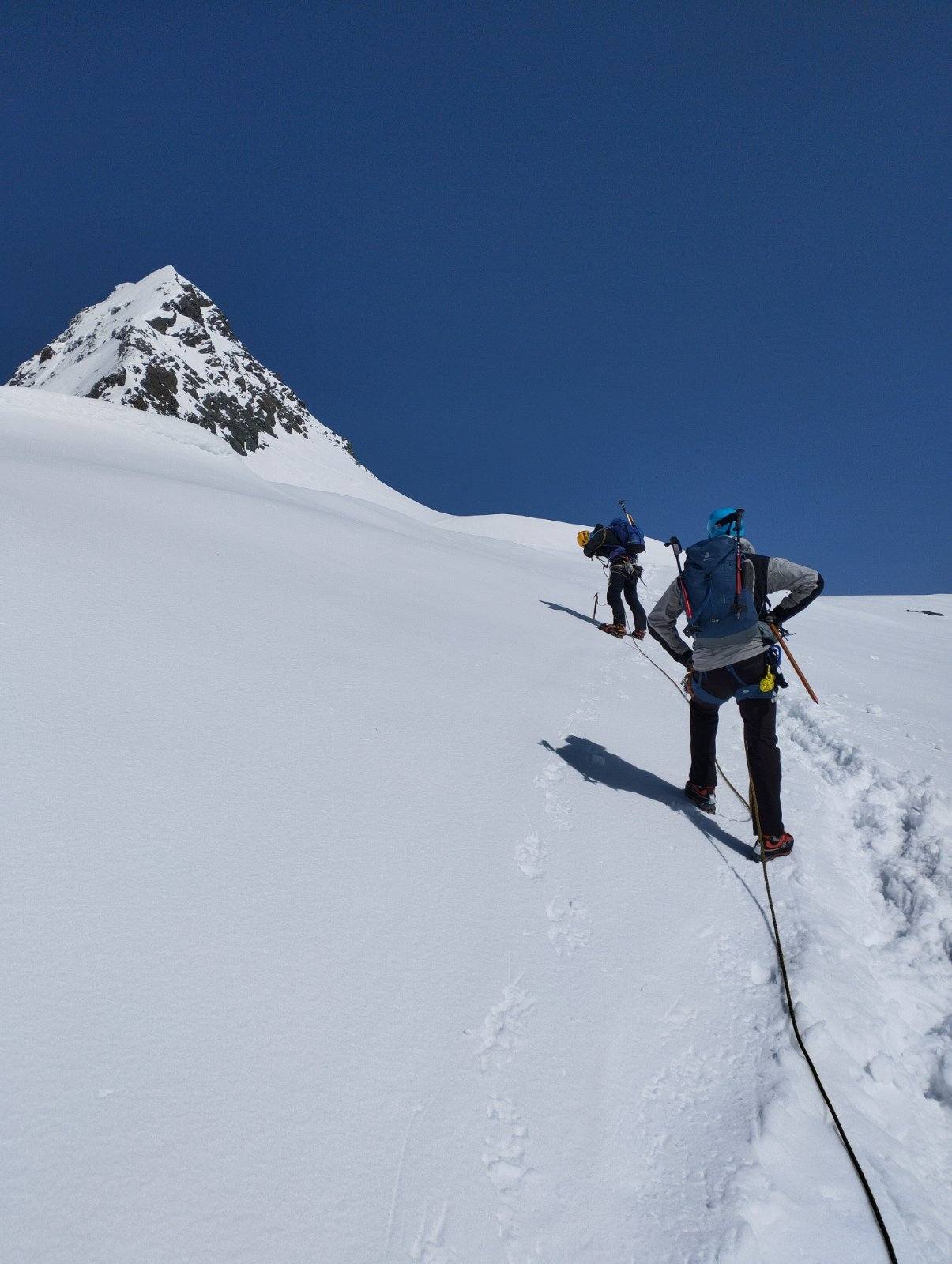 Uspon je bio planiran u teškim vremenskim uslovima, a prozor lijepog vremena otvorio se tek dan prije povratka. Ekipa kreće u ranim jutarnjim satima, brzo napredujući prema vrhu. Međutim, u jednom trenutku primjećuju skijaša kako pada niz greben. Ubrzo postaje jasno da je situacija ozbiljna.