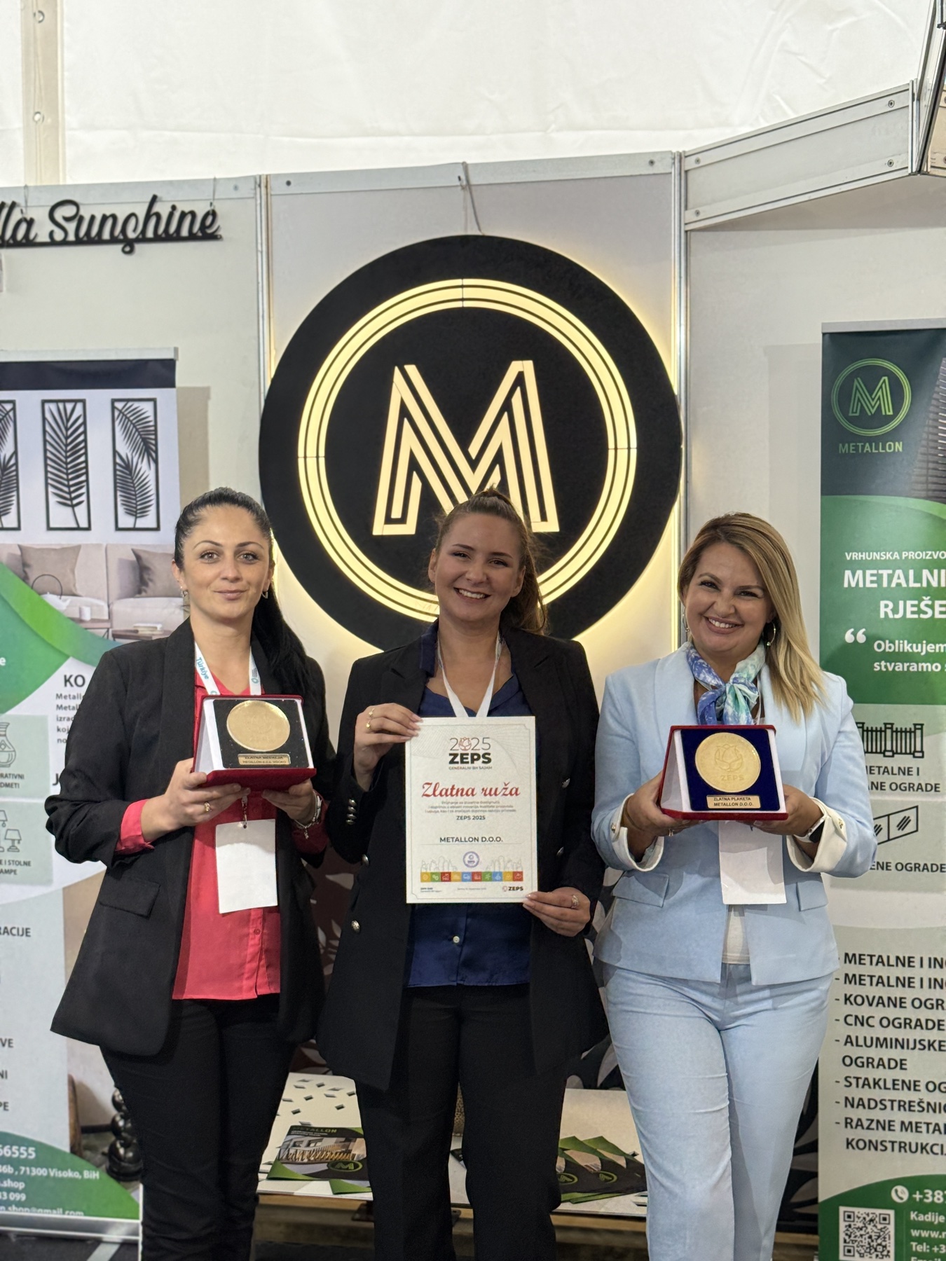 Kompanija Metallon d.o.o. Visoko drugu godinu zaredom osvojila je prestižnu nagradu Zlatna ruža 🌹, čime je potvrđen kontinuitet inovacija, kvaliteta i izuzetnog rada njihovog tima. Pored Metallona, nagradu Zlatna ruža ponio je i Vispak d.d. Visoko, što dodatno ističe snagu visočke privrede.