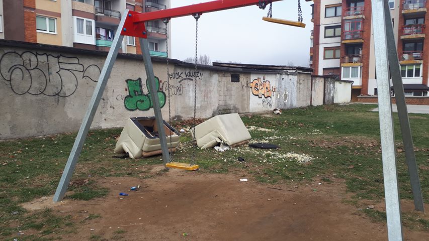 Riječ je o kućnom namještaju izbačenom u dječiji park u Naselju Luke, a koji su psi lutalice izmrvili i pri tome dodatno zaprljali park u kojem djeca svakodnevno provode vrijeme.