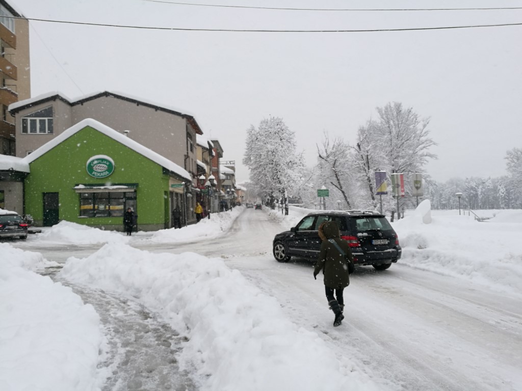 Gust snijeg i dalje pada i napravio ogromne probleme u Visokom. Glavna saobraćajnica očišćena je u toku dana, dok su trotoari i sporedne ulice ostale zatrpane i danas. Međutim, građani su primorani gaziti po snježnim nanosima.