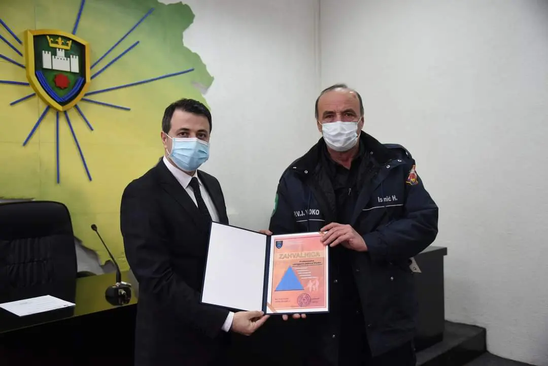 Profesionalnoj vatrogasnoj jedinici Visoko (zahvalnicu je preuzeo Ismić Husejn)